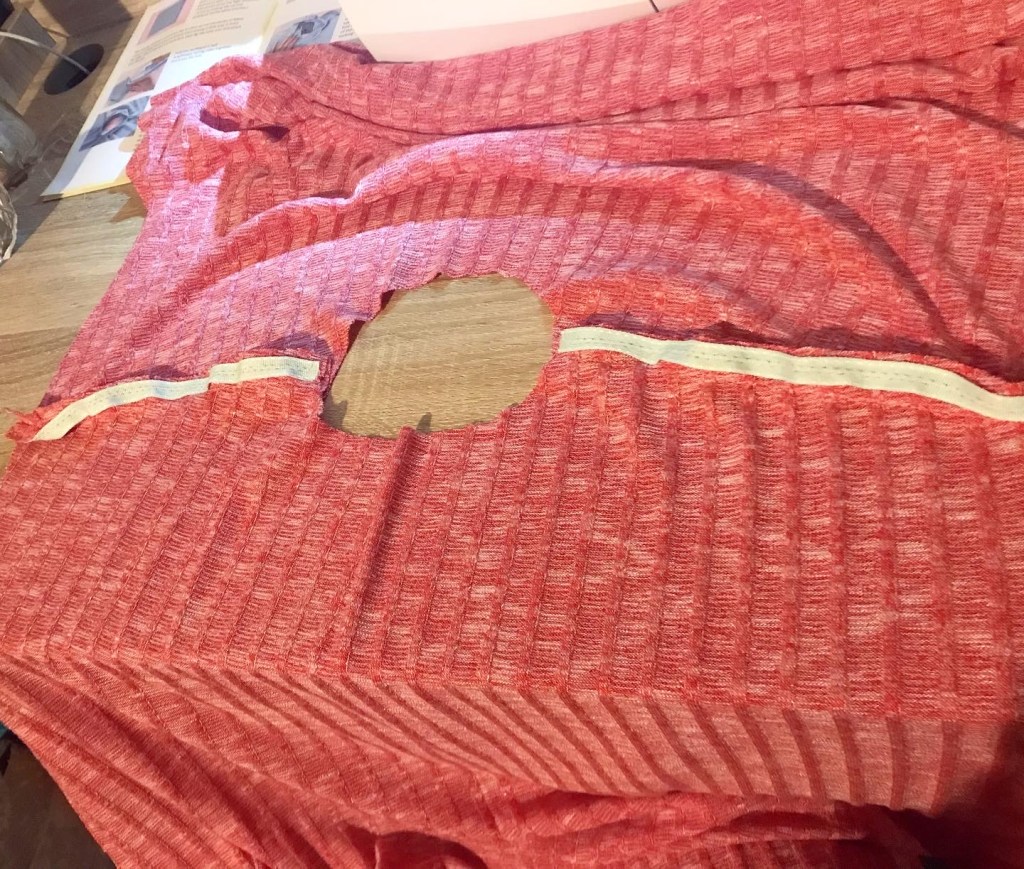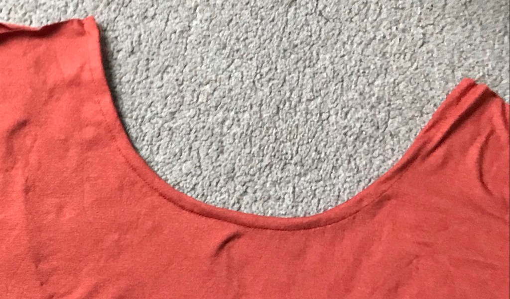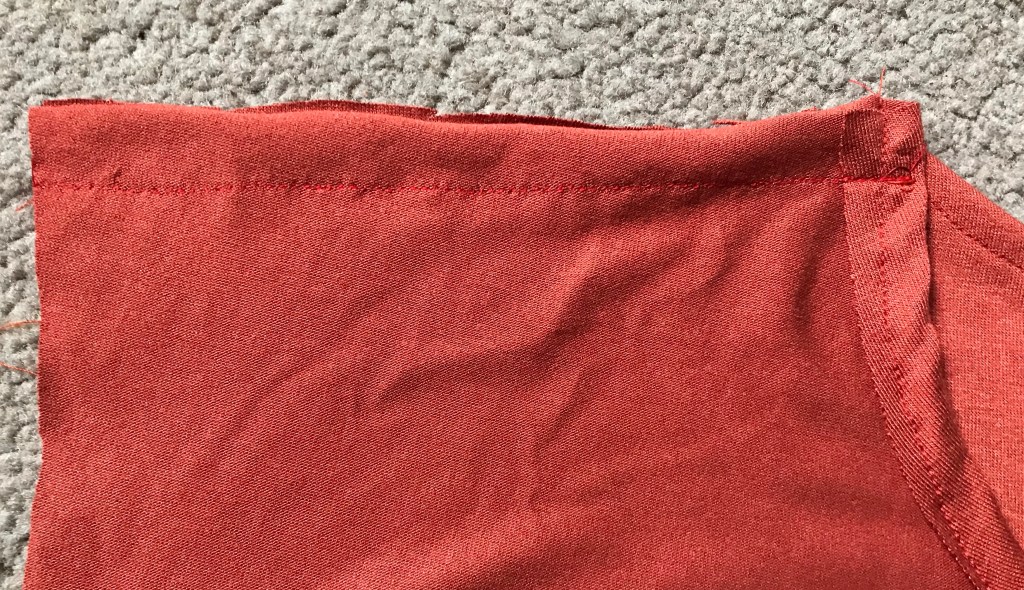 Nice and simple step here, the only trick is to make sure you match the neckline correctly and I used a lightening stitch to make sure the seam was nice and secure. A zigzag stitch often puckers on this fabric so I found a lightening stitch to be a lot more effective.