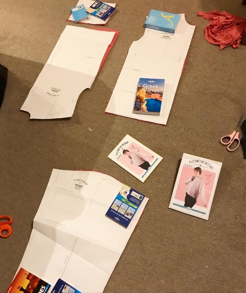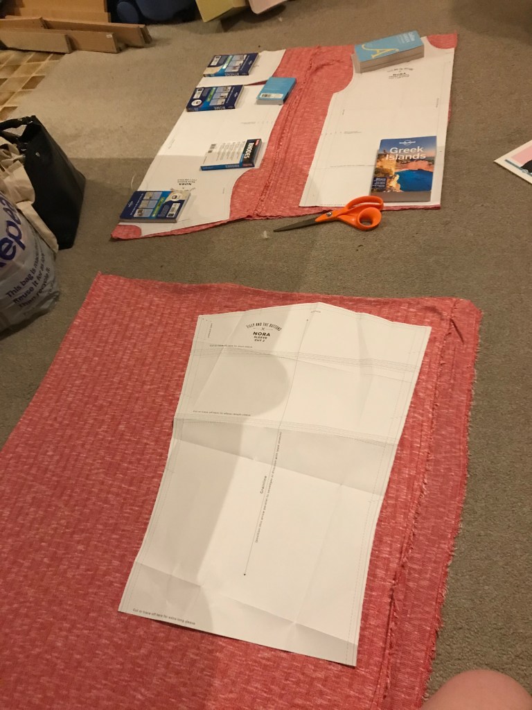 Disaster struck almost immediately tonight as I laid out my pattern pieces on my fabric and immediately found I didn’t have enough fabric. I always forget that Tilly and the Buttons patterns do actually use the amount of fabric they say they will on the pattern envelope! So it was back to the drawing board and I came up with the two fabrics you can see on my instagram story below. I asked you all to help me choose which fabric I should use and it came back as a straight 50/50 which was unhelpful. At that point I mentally decided that I am definitely going to make both of these into a Nora as I think they would both be cute for different reasons but honestly it came down to the fact that I am absolutely freezing so I chose the extremely cosy Salmon/Coral-Coloured Knit from Lamazi Fabrics and I will make the Polka Dot Nora in the summer as the fabric is very light. I then got on to cutting the fabric and stupidly I decided to use my mid-range scissors instead of my super fancy new ones and I wish I hadn’t! This fabric was a pain to cut and foresee some frustrating and slippery sewing so the jumper better be super snuggly. One thing I would mention is that once again the Tilly and the Buttons patterns have got my back up as I think the sizing is way off. I came up as a 12 in the pattern due to my bust which I wouldn’t mind if the waist was right but its not, I wear a 36″ bust but a 26/27″ waist which normally puts me between two sizes which I have to grade. However for Tilly and the Buttons I am two sizes apart and trust me its really hard to grade between an 8 and a 12 especially when we think about shoulders and back pieces. I don’t know what it is about the bodice block because the waist to hip ratio is pretty standard. I come up as an 8/10(by an inch) which is absolutely fine but I wonder if there is a reason the bodice block is so square? In this case I’m making a 12 because its for loungewear so I don’t care about a close fit but its really frustrating!