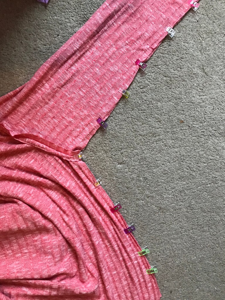 It’s the final day of the challenge and all I have to do is finish up the side seams, hem sleeves and close the stepped edges. I have been sat editing this blog this morning and listening to the Un:Cut Podcast which has been really relaxing and as I was sat thinking I realised the solution to my pin problem – I have fabric clips now! I’m not used to them yet as I only got them over Christmas but they worked like an absolute dream on my Nora. The only issue I had is that the sleeves were SIX INCHES, yes you read that right, six inches too long so I had to chop half the sleeve off to make it fit! Head over to my instagram to see how bad the situation was!