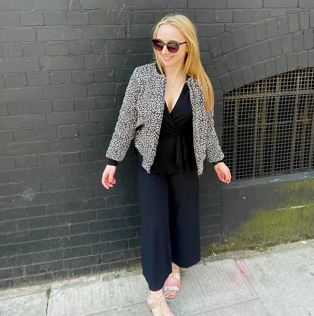 One of the functions of these blogs is take a moment and think about my week. I know I mentioned I was starting to be a bit better about taking time for myself but this philosophy sort of dissolved in the run up to the holiday as so much had to be done before I left. However on reflection I did manage to take some time for myself before it all kicked off! I started last week with a relaxed Sunday at the hairdressers. My appointments take roughly 6 hours but I really value that time to sit and relax, to read a magazine, to get a bit of local gossip, and generally enjoy time that is truly my own. I had dinner with a friend that I’ve not really seen since January 2020 which was wonderful and on Good Friday Adam and I had a wonderful relaxed afternoon in town together. What originally was a quick admin trip for birthday presents and picking up shoes from Timpsons, devolved into a full day together in town including lunch out and some shopping for me – I managed with great difficult to stay away from the fabric shop but I am on a fabric ban until I have enough space to the fabric I currently own! I also managed to accept that I wasn’t going to be able to finish my purple satin dress in time for our weekend away so instead of stressing and beating myself up I decided to be kind to myself and I ended up buying a RTW jumpsuit(as shown below with the bomber jacket) and a red jersey dress. Both of which I adore and fit me perfectly! Thats the funny thing, when you fully stop shopping for clothes and sew most of your wardrobe, buying something RTW becomes a lovely treat. Something that happens once in a while and that I appreciate far more than I used to. I really enjoyed trying things on, thinking about upcoming makes and silhouettes but not feeling pressure to get anything just engaging with my love of clothes and treating myself after what has been a really intense couple of years.