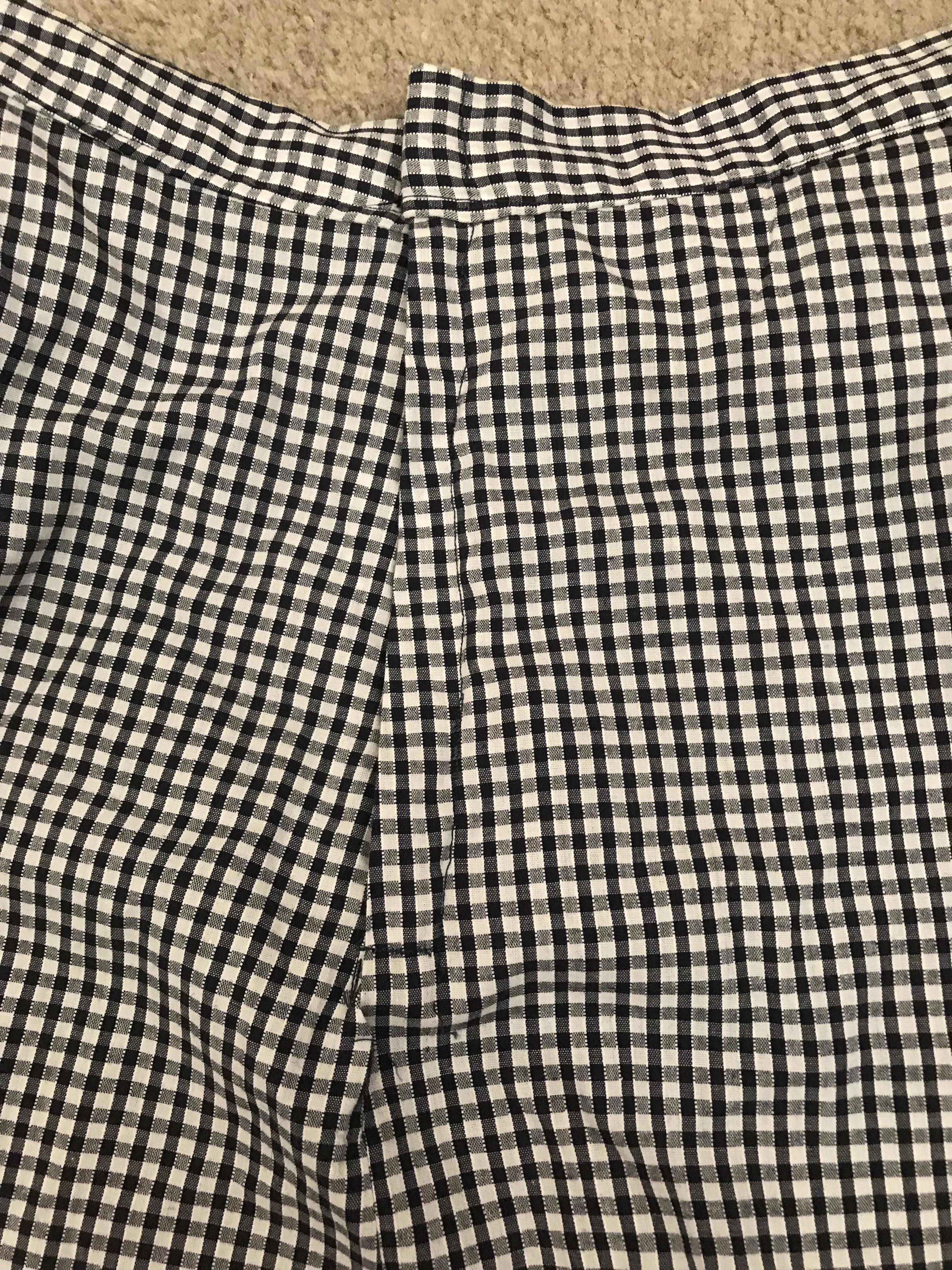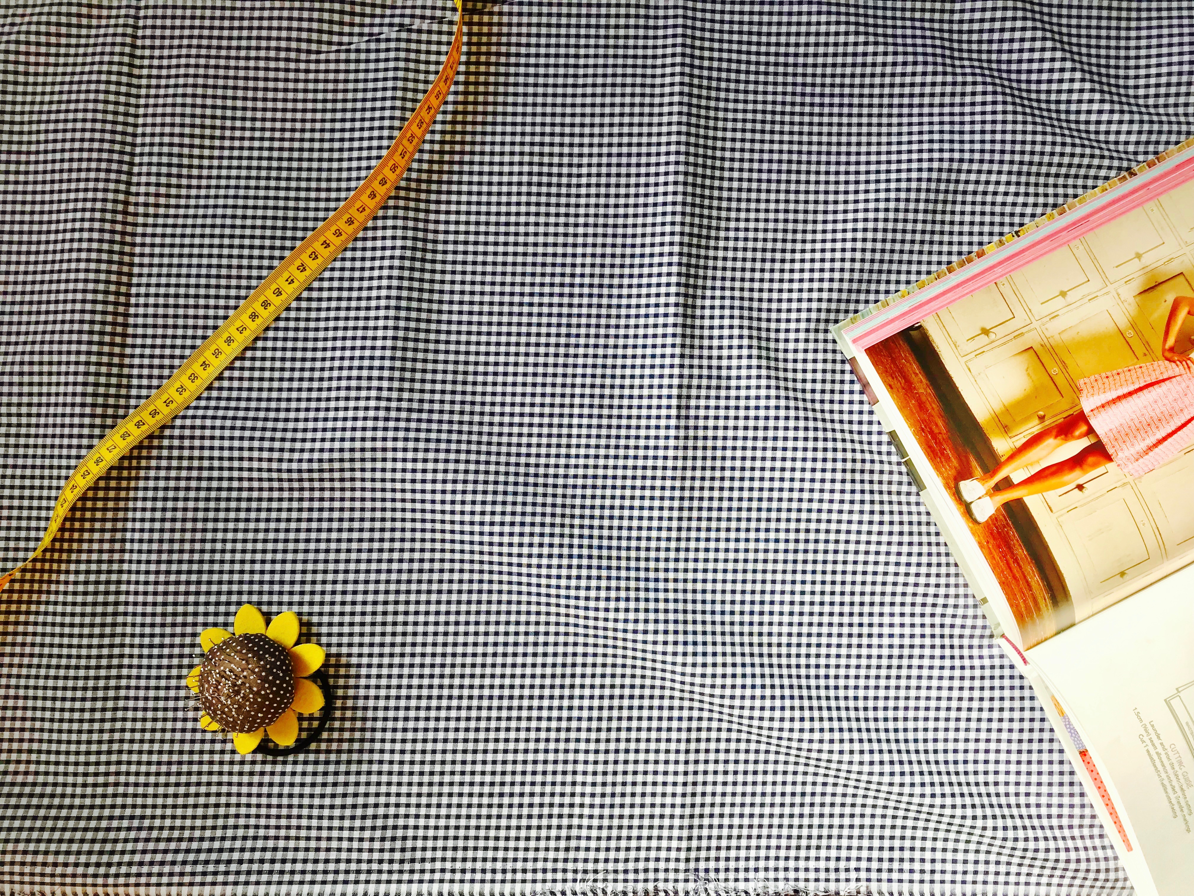 I feel like my sewing has improved a lot since that first make, well I hope it has, but I wanted to do an experiment to measure the difference. To see just how much I have learnt in the last year and a bit. Initially I wondered about aiming for a really complex make to show how far I’ve come but I wanted a direct comparison and I didn’t think just making a more advanced garment would provide that. Instead I decided the best way would be to make the same skirt again and observe the differences. I dug out the pattern again and I chose to make the skirt out of a lightweight navy blue gingham from Rainbow Fabrics Kilburn. The fabric has a good amount of structure to it and it’s opaque while still letting some light through. The big thing I’ve learnt about gingham is that it frays incredibly easily so I used my pinking shears quite a bit and tried to use lots of enclosed seams.