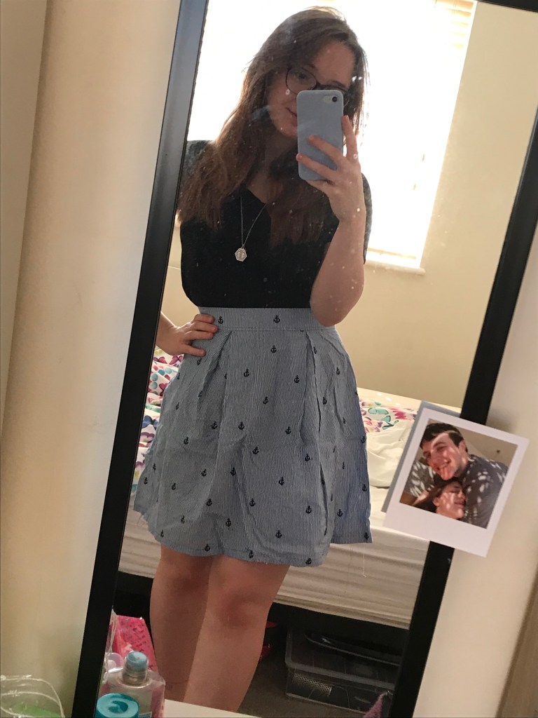 As to why I didn’t do this much earlier, up to the summer of 2018 my partner and I had lived in shared houses and as we all know, sewing machines are not exactly quiet and I didn’t think it would be fair on my housemates. Fast forward then to April 2019, I had 10 days of leave booked, my sewing machine was ready to go, all I had to do was pick a pattern. And I picked this! A box-pleat skirt from one of the Sewing Bee pattern books. It took me a few weeks because I really wanted to take my time and get it right but on the 19th May 2019 I finally finished my first entirely me-made garment. There are definitely a few things I could have done better but it’s precious to me and despite its flaws I wear it all the time. It’s a work-appropriate length and incredibly light plus the shape given by the box-pleats means the skirt doesn’t flip up in the wind – what’s not to love?
